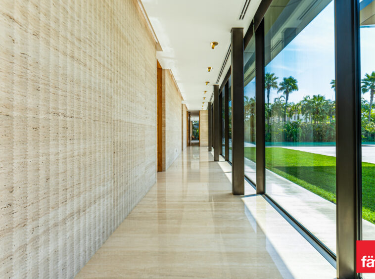 Floor in main house and majlis(guest house) is polished travertine, natural color