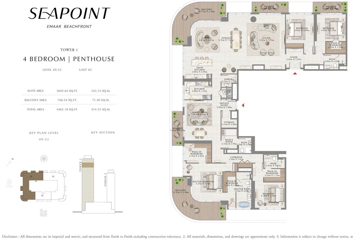 -3694Sq Ft/343sqm suite area, 768Sq Ft/71sqm balcony area